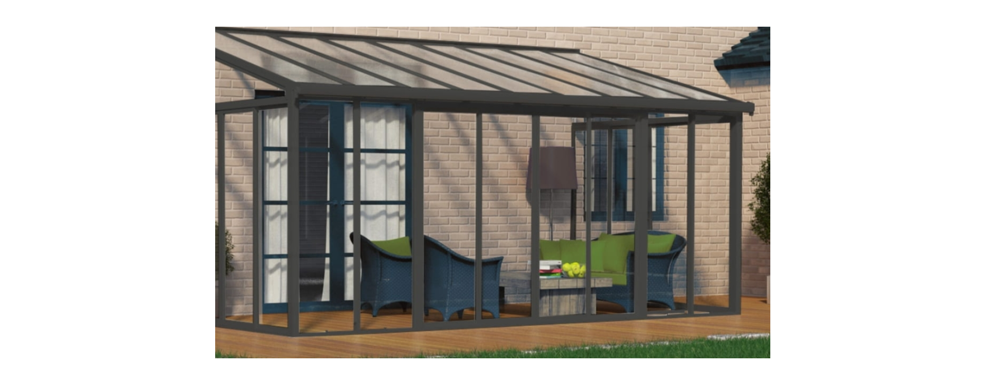 Våre modeller leveres med herdet sikkerhetsglass og robuste aluminiumskonstruksjoner. En gjennomført hagestue i glasskonstruksjon gir ikke bare et eksklusivt uttrykk, men også minimalt vedlikehold og lang levetid. Mange velger også hagestue i glass fordi det gir maksimal fleksibilitet i bruk gjennom året.