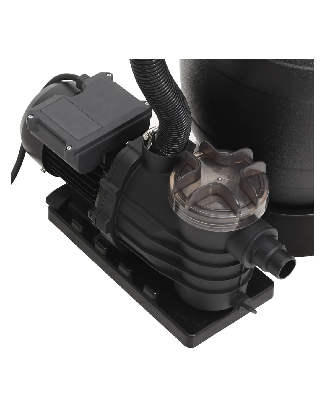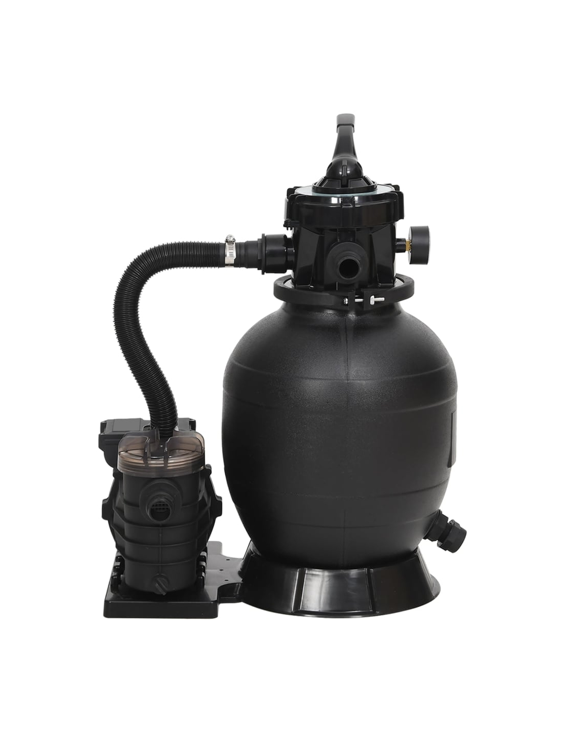 Dette sandfilteret med pumpe er designet for å sirkulere bassengvannet og holde det rent. Du kan fylle det med filtersand eller filterkuler. Praktisk forfilter: Forfilteret med avtakbar kurv beskytter pumpen ved å fjerne skitt og rusk fra innløpsvannet og forlenger pumpens levetid. Det gjennomsiktige dekselet gjør at du enkelt kan se når kurven må tømmes.Effektiv ytelse: Denne sandfilterpumpen kan filtrere opptil 10.000 liter vann i timen. Det er et uunnværlig verktøy for svømmebassenget, og fungerer som en del av sirkulasjonssystemet for å holde vannet rent. Enkelt vedlikehold og høy holdbarhet: Dette bassengtilbehøret trenger ganske lite vedlikehold for å holde bassengvannet uberørt. Det kraftige sandfilteret er laget av stål, PE og ABS, noe som gjør det svært holdbart. Lett å lese: