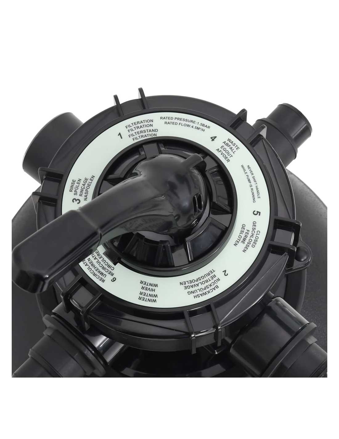- Multiportventil med 6 stillinger: filter, tilbakespyling, skylle, tømme, resirkulere og lukke