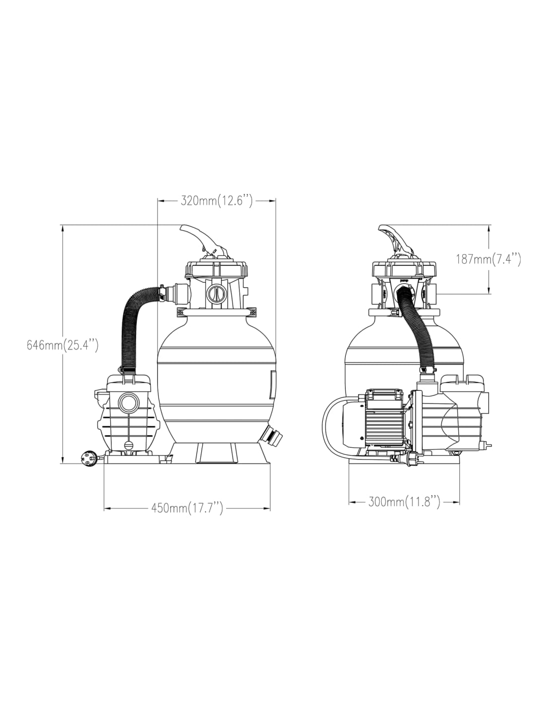 Dette sandfilteret med pumpe er designet for å sirkulere bassengvannet og holde det rent. Du kan fylle det med filtersand eller filterkuler.