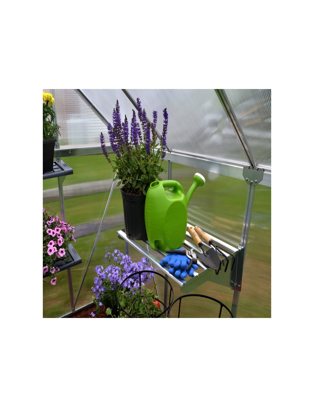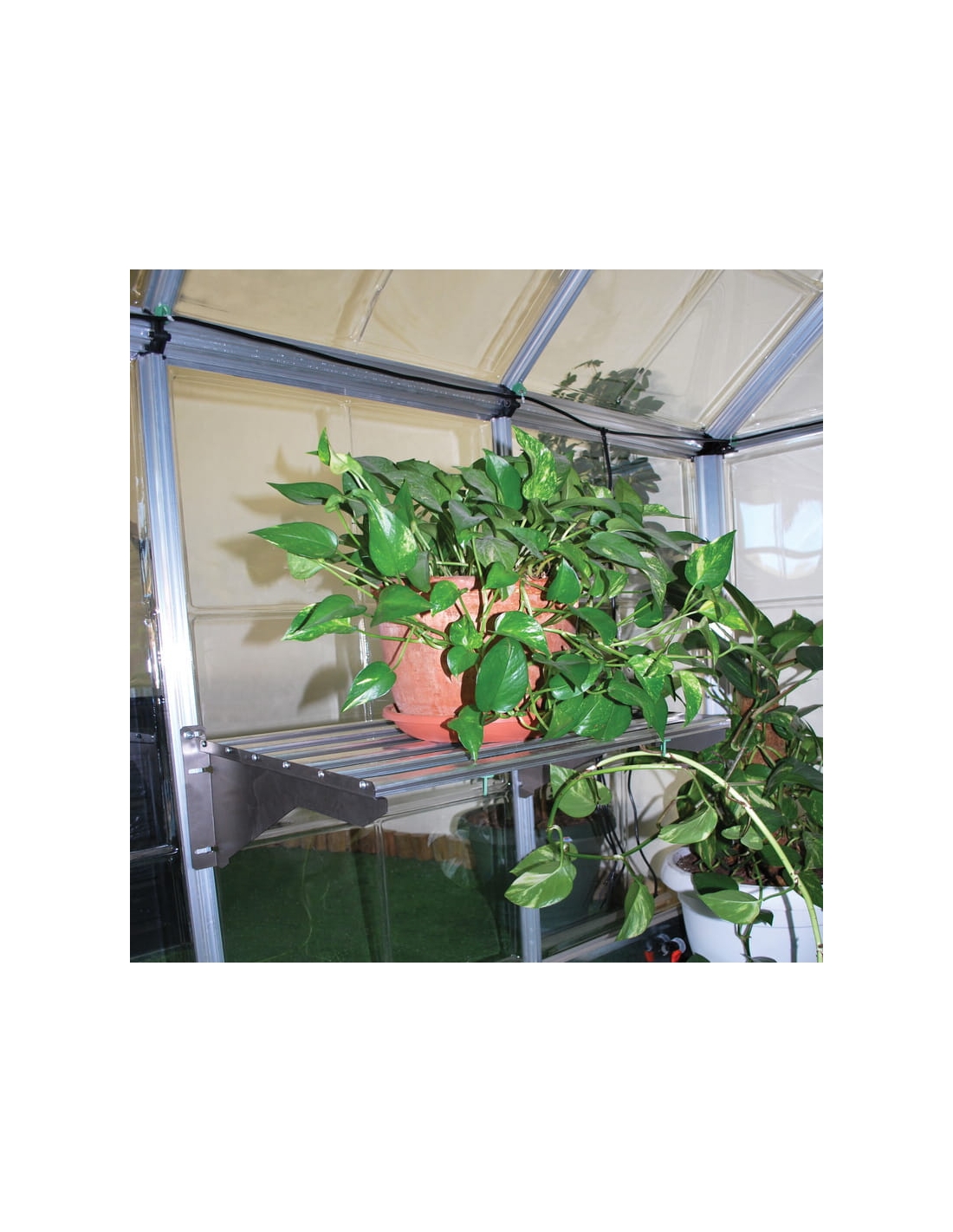Maksimer plassen i drivhuset med Palram – Canopia Heavy Duty Aluminum Shelf – en ekstra solid og romslig hylle designet for tyngre oppbevaring. Denne robuste aluminiumshyllen monteres på få minutter og kan enkelt flyttes eller tas ned ved behov.