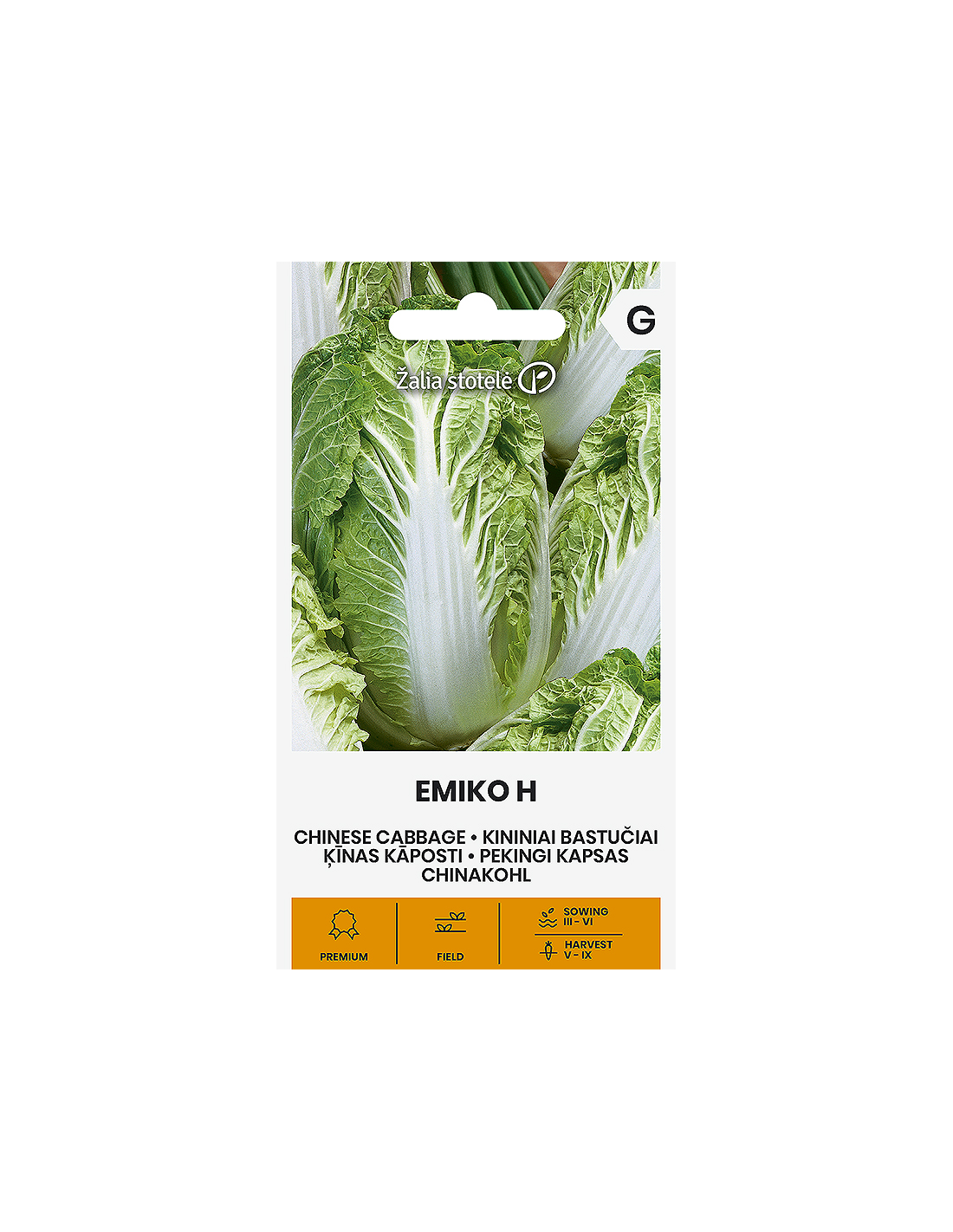 Emiko H er en middels tidlig og svært allsidig hybrid av kinakål, perfekt for dyrking gjennom hele sesongen – fra tidlig vår til sen høst. Med en vekstperiode på ca. 65 dager, gir denne sorten jevne, faste og kompakte kålhoder av høy kvalitet. Sorten egner seg spesielt godt til høstavling, da kålhodene kan lagres lengre enn mange andre sorter.