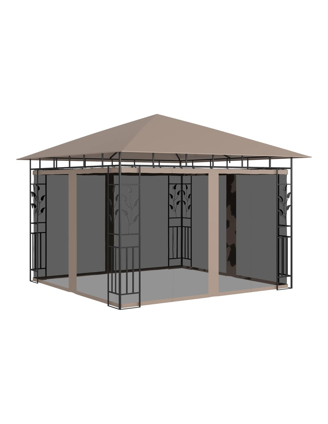 Paviljong med myggnett 3x3x2,73m gråbrun 180 g/m²