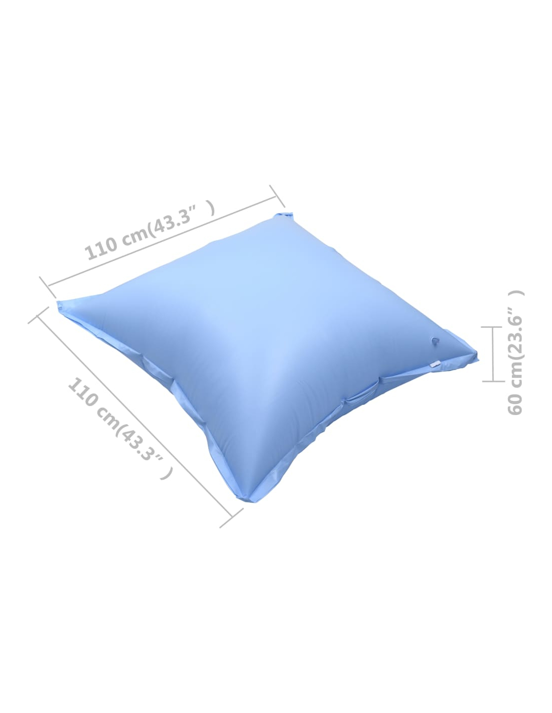 Settet med to bassengputer er den ultimate følgesvenn og beskyttelse for ethvert basseng om vinteren. Det holder bassenget dekket trygt mot is i vintermånedene fordi det holder vannet unna bassengtrekket. Puten sikrer også at trekket ikke fryser til bassengvannet i den kalde lavsesongen. Denne puten er laget av solid PVC, som gjør den holdbar for utendørs bruk. Når de er oppblåst, måler hver pute 110 x 110 cm. Den skyver bassengdekket opp fra vannets overflate, slik at vannet ikke fryser til bassengdekket.