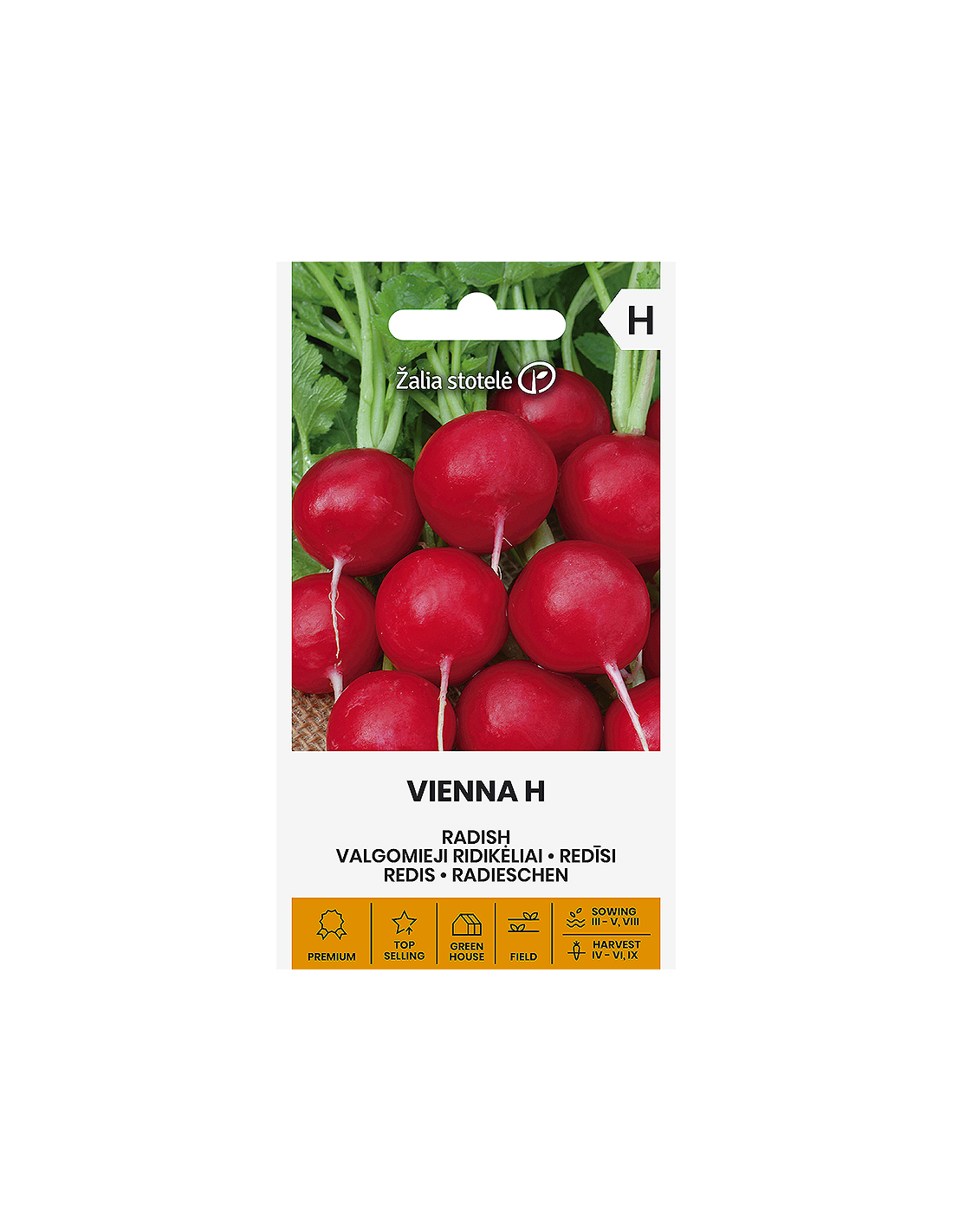 Tidlig hybrid med jevn kvalitet og sykdomsresistens. Vienna H er en tidlig reddikhybrid som gir jevn og pålitelig avling. Sorten er tolerant mot fusarium, noe som gjør den ekstra robust i dyrking. Den danner runde, røde røtter med en diameter på opptil 5 cm, med sprø, saftig og mildt fruktkjøtt. Røttene er jevne i størrelse og har en fin, tynn rot.