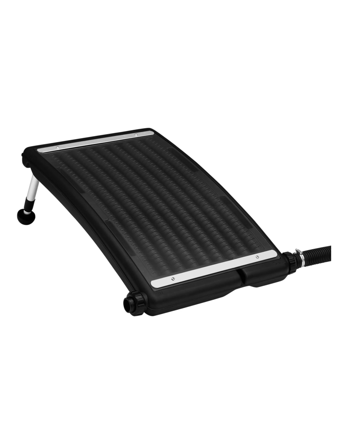 Denne solcellevarmeren for basseng er ideell for frittstående bassenger. Den varmer opp bassengvannet ved bruk av solenergi. Dette soldrevne oppvarmingssystemet er designet med høykvalitets materialer som tåler hyppig eksponering for sol og utendørs elementer. De buede bassengvarmende panelene og de justerbare bena sørger for maksimalt areal for å fange solenergi, noe som gir høyere varmeeffektivitet.