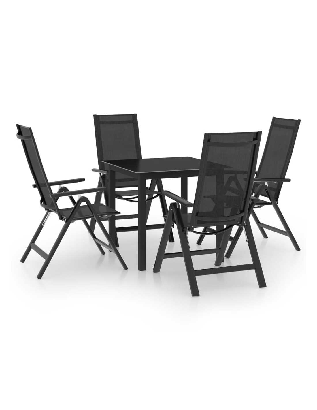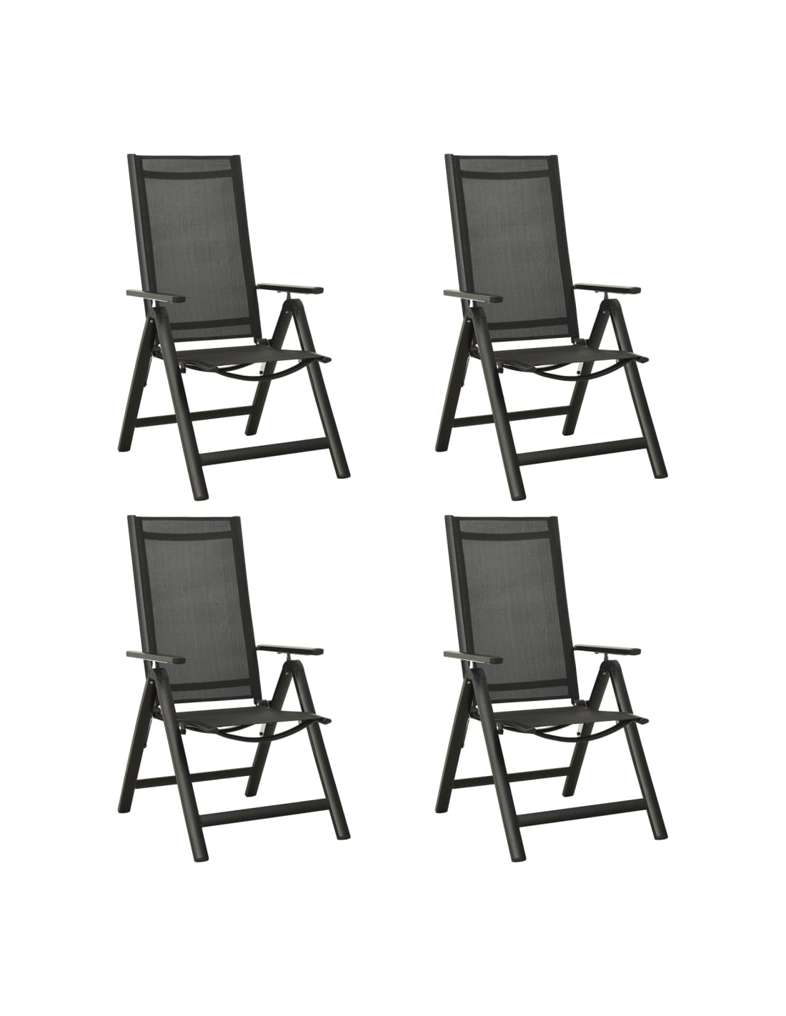 Den pulverlakkerte aluminiumsrammen gjør møbelsettet veldig solid og holdbart. Hagestolene har myke seter og ryggstøtter i textilene, som kan justeres i 7 posisjoner, slik at du alltid kan finne den mest komfortable sitteplassen. Lenestolene kan foldes sammen for å spare plass når de ikke er i bruk. Bordet har en glass bordplate, som er enkel å rengjøre og egnet for utendørs bruk.